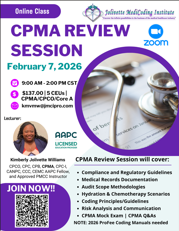 2/7/2026 JMCI Certified Professional Medical Auditing-CPMA Preparatory LIVE then ON-DEMAND Review Session