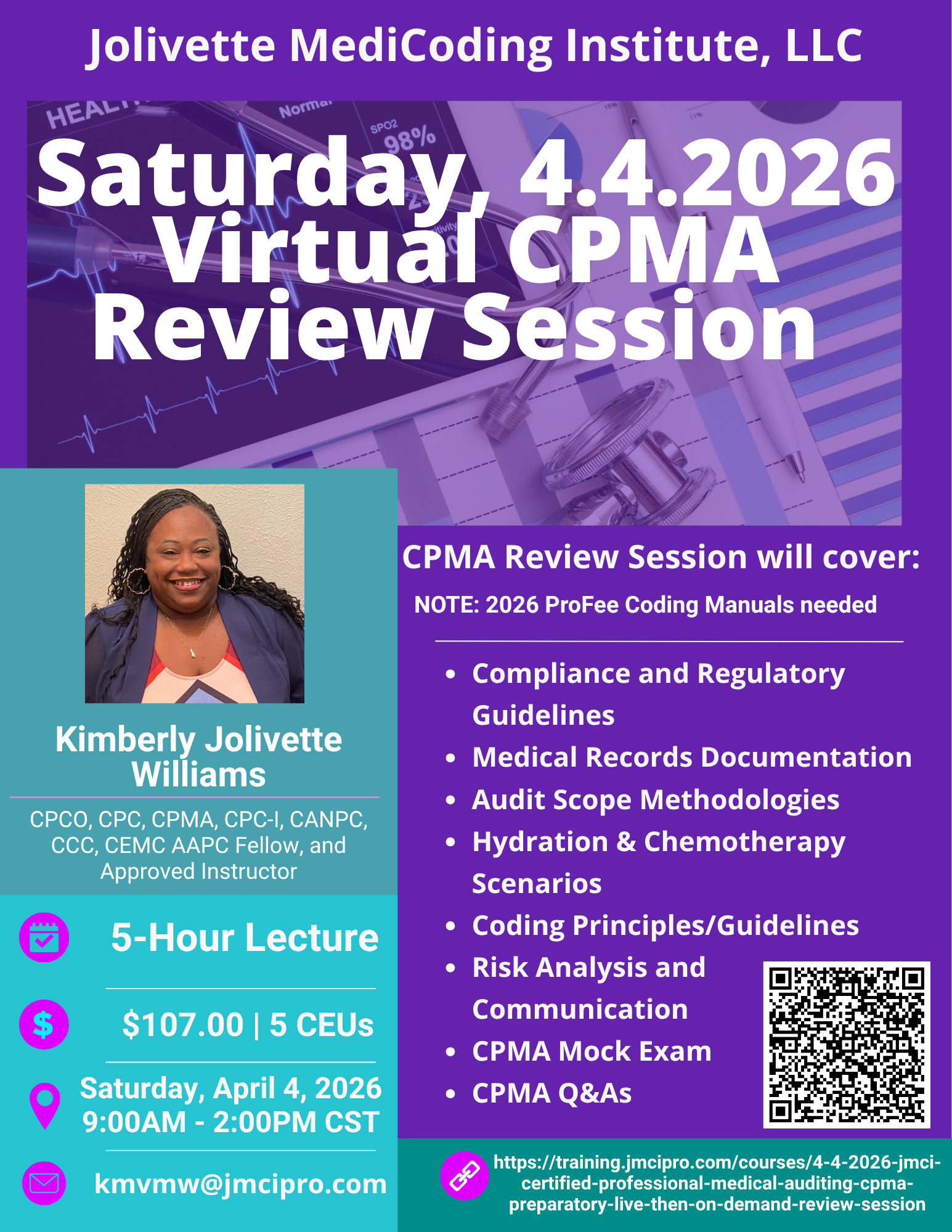 4/4/2026 JMCI Certified Professional Medical Auditing-CPMA Preparatory LIVE then ON-DEMAND Review Session
